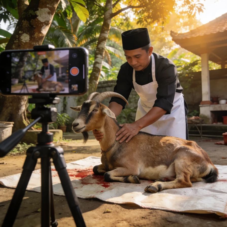 Disembelih oleh ahlinya dengan memenuhi rukun dan syarat sah. Laporan video transparan tanpa potongan.